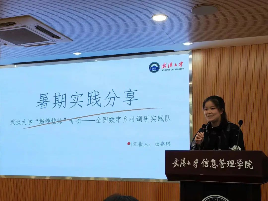 最后进行分享的是来自“RAYBET雷竞技‘揭榜挂帅’专项——全国数字乡村调研实践队”的杨嘉琪同学。杨嘉琪同学所在的团队包含来自全校14个不同院系的59名本硕博同学,如此大的团队规模需要仔细分工,如通过将整个实践队分为若干小队,确保任务落实到每一个人。就如何调动众多成员的积极性这一问题,杨嘉琪同学也给出了自己的解决方案——通过详细记录各个成员的贡献值形成榜单,按团队贡献度进行名单排序,激励团队成员完成实践任务。